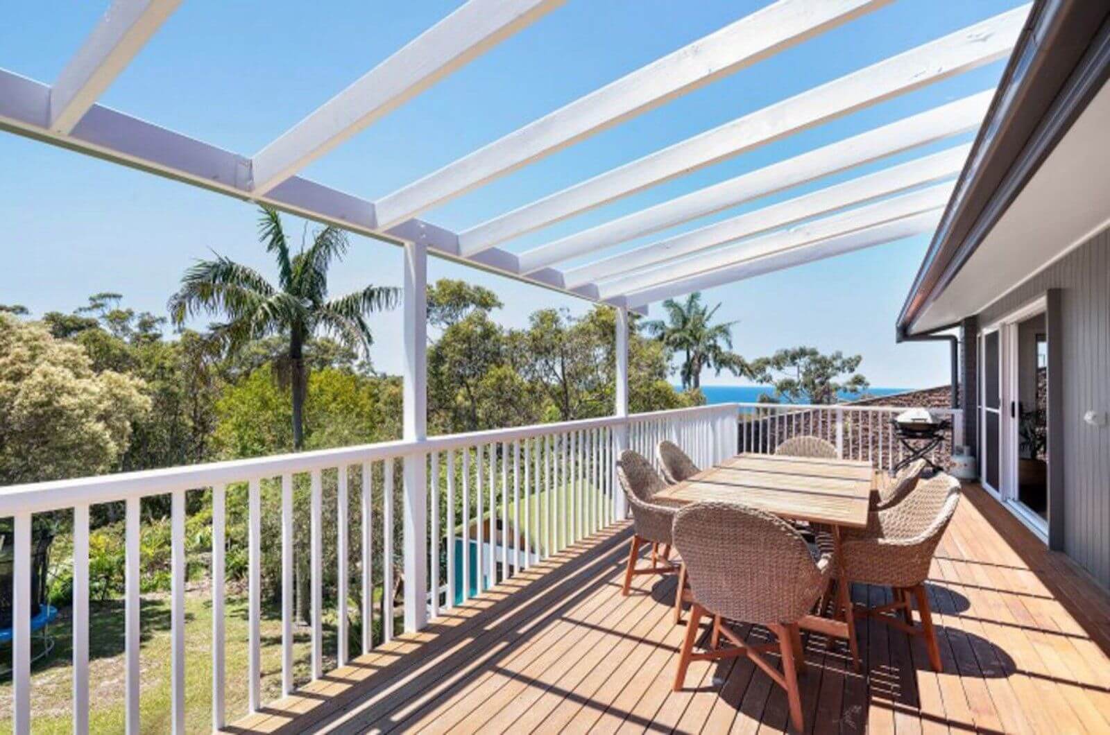 Bouddi Getaway is an ideal family holiday home. This property boast an open plan family/ kitchen / dining area leading out to great sunny deck with outdoor setting and ocean views. This 3 bedroom and 2 bathroom home is perfect for getaways. The home is located in a quiet street with a 600m walk to the beach via a nearby track.