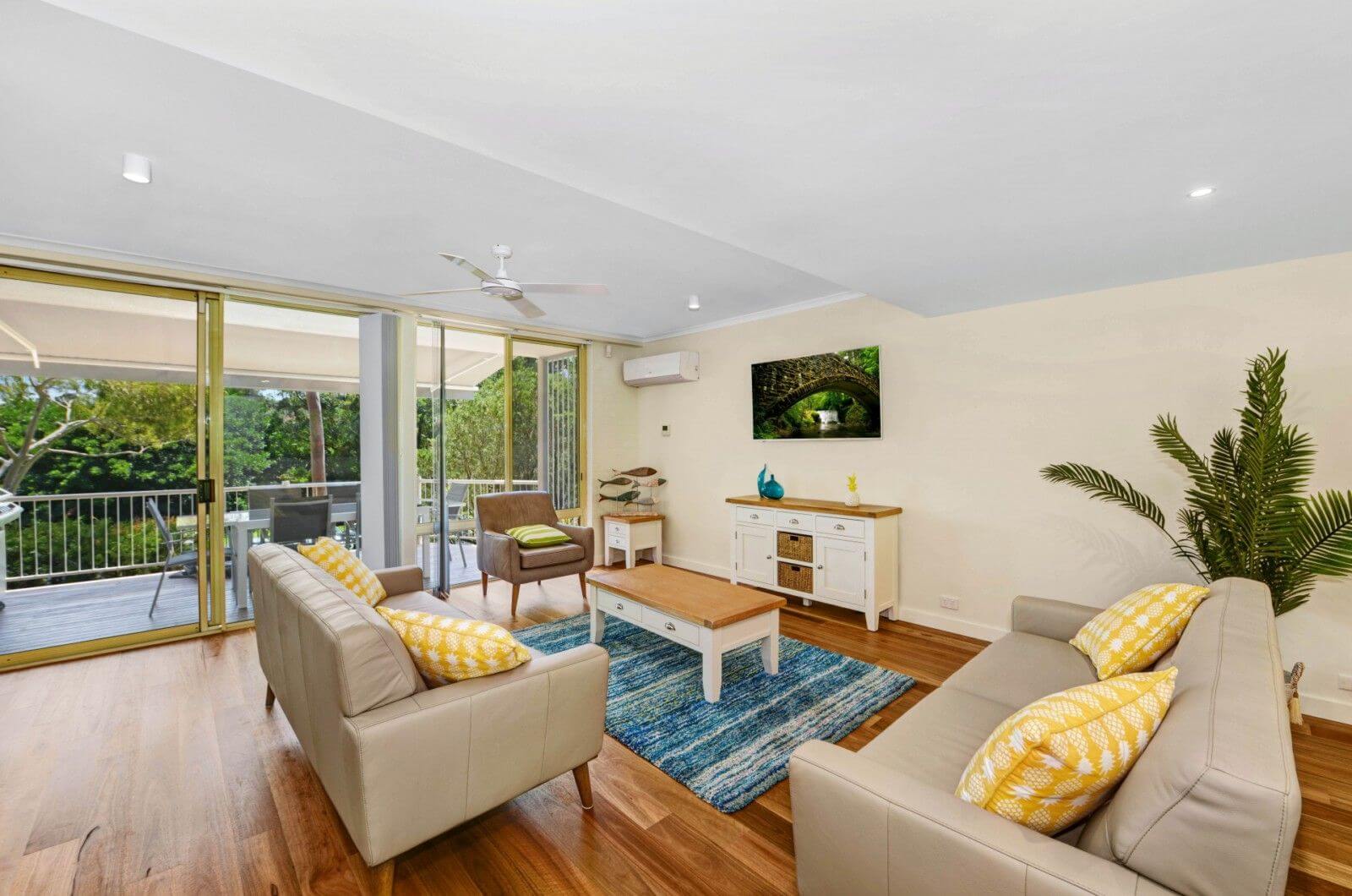 The lounge room and master bedroom are air conditioned and the two other bedrooms have ceiling fans. The master bedroom has a ceiling fan and a king size bed, and the other two bedrooms have a king size bed in each. The beds can be separated to make single beds - please request this if required when making the booking. The main bedroom also has an ensuite, and Hisense Smart TV. All bedrooms also have USB charges in power points at the bedheads and access to shared balcony.