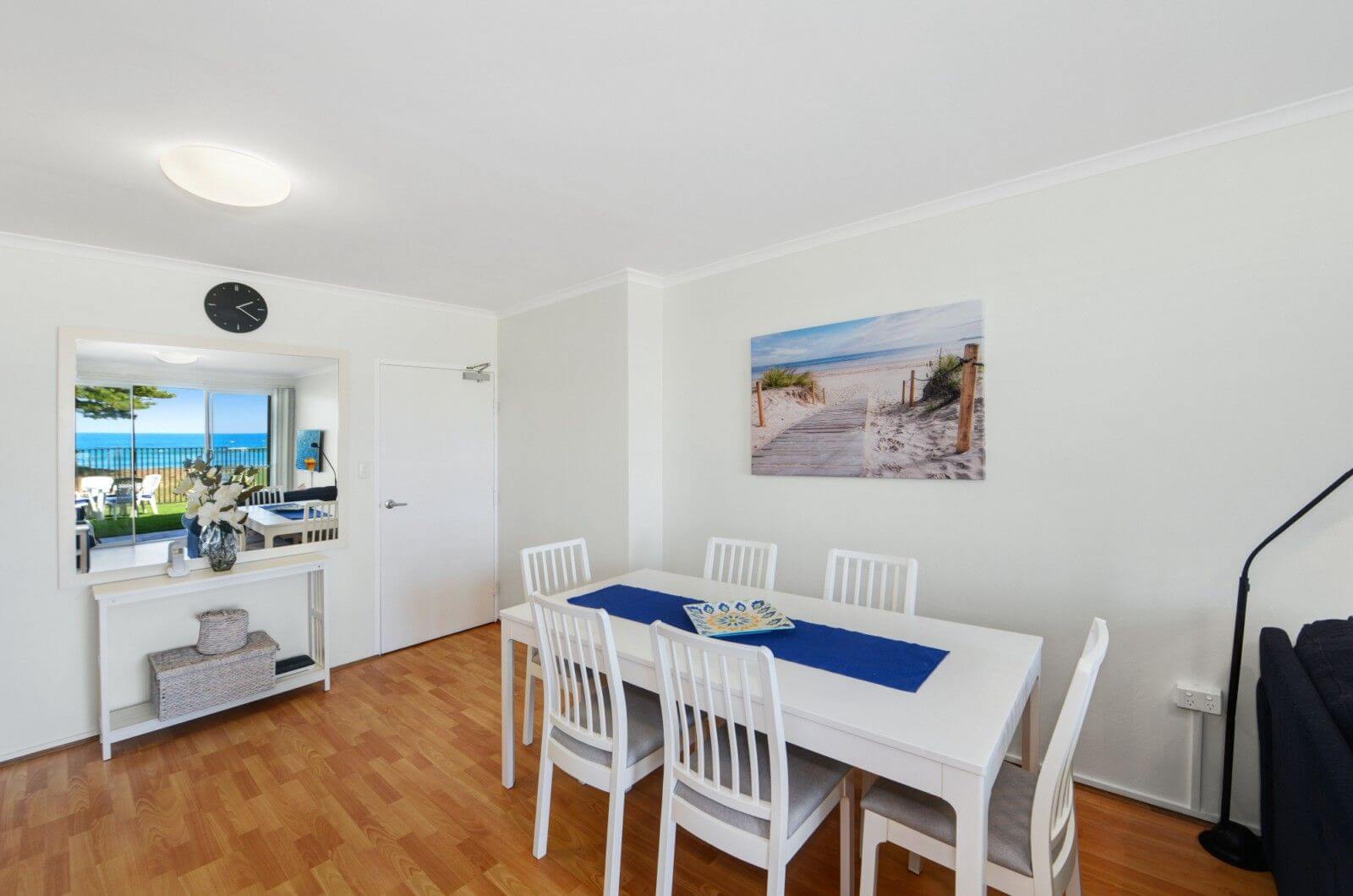 Main bedroom contains queen size bed with views of the beach. Bedroom two has a cantilever tri bunk. Linen not provided.