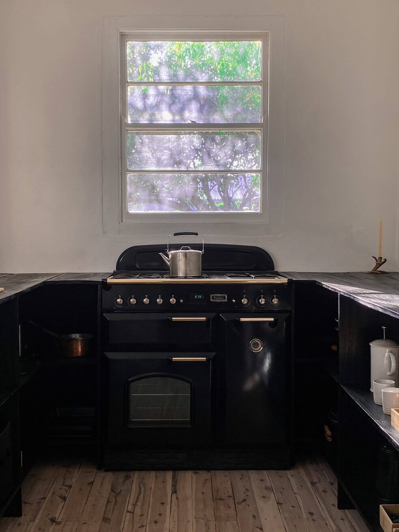 The kitchen has been hand built, featuring the Japanese shou sugi ban technique. It’s a foodie’s kitchen with a 90cm Falcon oven and a delight to cook in. Guests can pick from the abundant herb garden to use in cooking - parsley, thyme, oregano, basil (Italian and Thai), wild rocket, coriander, sorrel, baby spinach, rosemary, chives, tarragon and more.