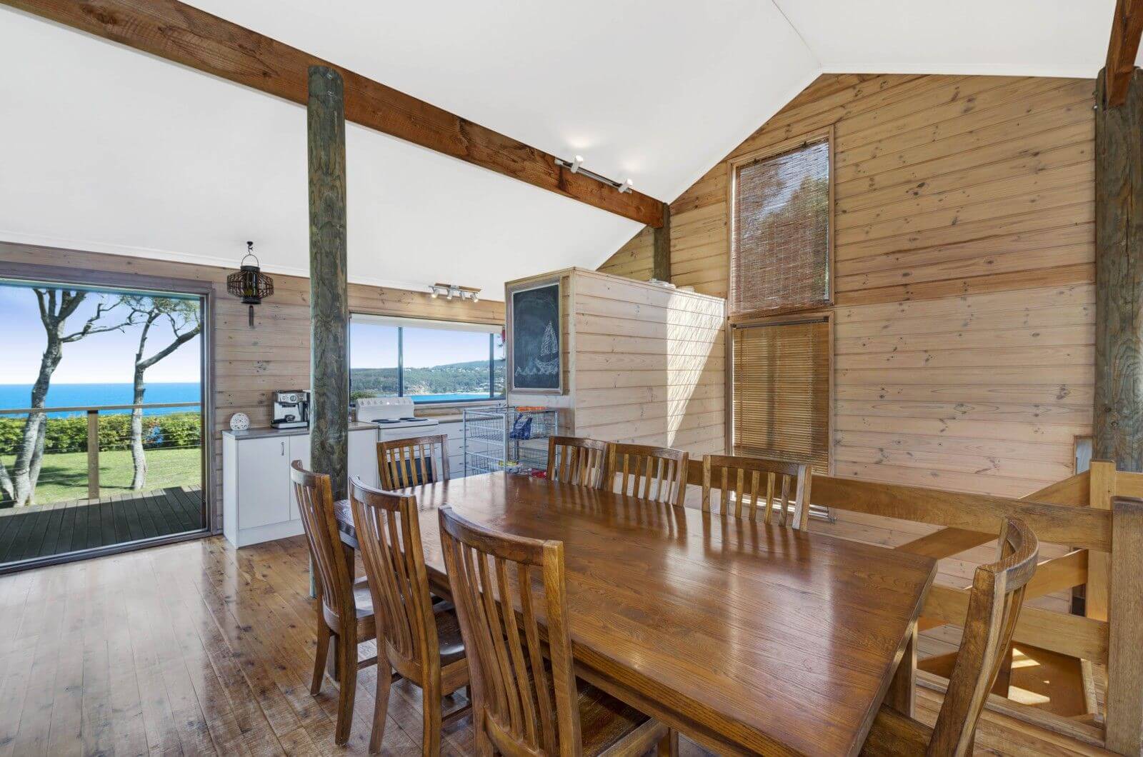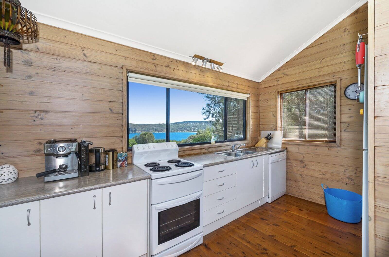 A rustic style cottage, featuring open plan kitchen/living and AMAZING ocean views. Kitchen has dishwasher, etc. Great deck to enjoy the view facing the ocean and another deck facing the valley. Easy stroll to the beach, shops and restaurants of Copacabana.