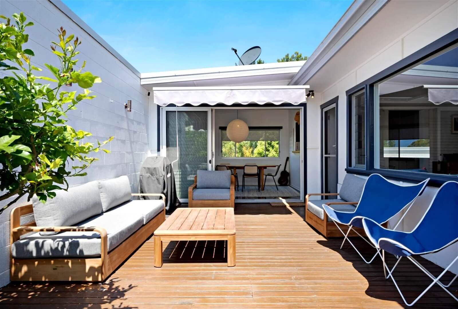 This beachside cottage is just what a holiday home should be. It has an inviting charm that attracts a relaxing getaway vibe for the family or couples. The fresh ocean breeze and smell circulate the house whether it be entertaining on the large wooden deck overlooking the gardens or inside by the cosy gas fireplace. It is the perfect cottage all year round.